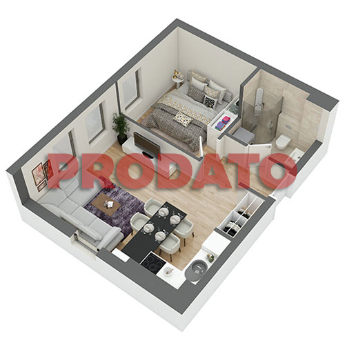 ORIJENTACIJA STANA 3D PRIKAZ STANA STRUKTURA STANA KVADRATURA PROSTORIJA PROSTORIJA P 01 HODNIK 4,06 02 KUHINJA 3,34 03 DNEVNI BORAVAK SA TRPEZARIJOM 13,96 04 KUPATILO 4,08 05 SPAVAĆA SOBA 9,34 UKUPNA GREJNA POVRŠINA 34,78 UKUPNA KVADRATURA 34,78